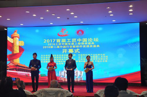 4月23日,由国家发展和改革委员会、中国发展网、中国高科技产业化研究会、中国行业新标杆奖征评委员会共同主办,中华全国总工会中工网、中国西部开发促进会、CCTV精彩视界、中国网联盟中国、中国企业网等协办的“2017工匠中国论坛--2016工匠中国年度人物盛典暨2016