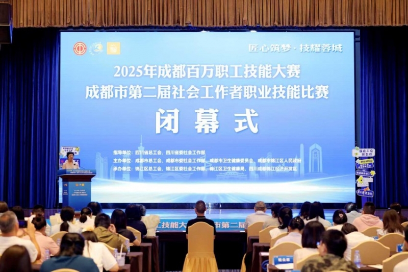 闭幕式现场。主办方供图 人民网成都9月20日电 (赵祖乐、实习生李林蔓)9月19日下午,2025年成都百万职工技能大赛——成都市第二届社会工作者职业技能比赛在成都市锦江区落下帷幕。赛事以工会社会工作者、社区社会工作者、医务社会工作者为参赛对象,吸引了504名