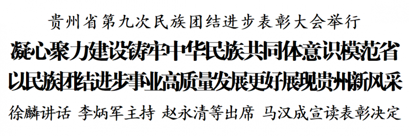 9月19日,贵州省第九次民族团结进步表彰大会在贵阳举行。省委书记徐麟出席并讲话,强调要进一步深入贯彻习近平总书记关于加强和改进民族工作的重要思想,深学笃用习近平总书记在贵州考察时的重要讲话精神,凝心聚力建设铸牢中华民族共同体意识模范省,以民族团结进步事业高质量发展更好展现贵州新风采。