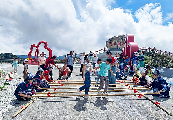 秋高气爽的假日里,不少游客选择到南宁大明山风景旅游区欢度节日。游客们将对国家、对家人的祝福话语写在丝带上,让美好心愿随风飘扬。此外,景区内竹竿舞互动、民族舞蹈表演、山歌对唱等活动接连上演,游客们在欣赏自然美景的同时感受民俗文化。