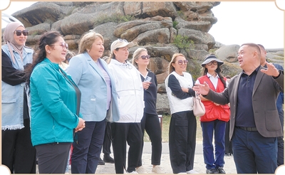 8月,哈萨克斯坦的妇女代表团来到阿勒泰地区,参访吉木乃县草原石城景区。巴丽江·毛里别克摄