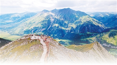 吉克普林云霄峰是阿尔泰山脉的高峰之一,山顶可俯瞰中俄哈蒙四国风光,形成“一脚踏四方”的地理奇观。张福新摄